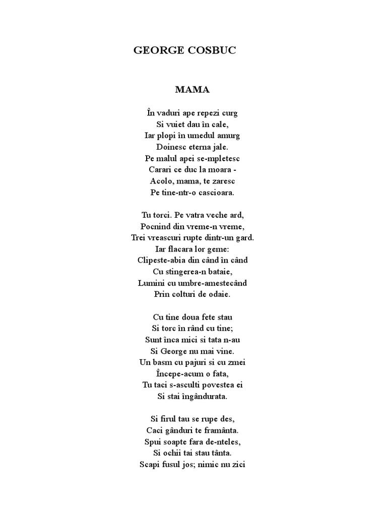 Poezia Mama De George Cosbuc In Vaduri Ape Repezi Curg Si Vuiet Dau In Cale Iar Plopi In Umedul Amurg Doinesc Eterna Jale Pe Malul Apei Male Male Sketch Art
