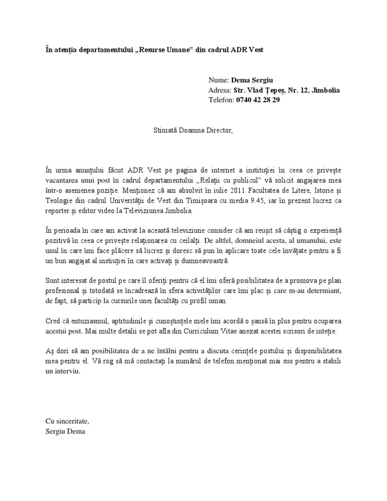 Scrisoare De Intentie Model Proaspat Absolvent Ele Ro