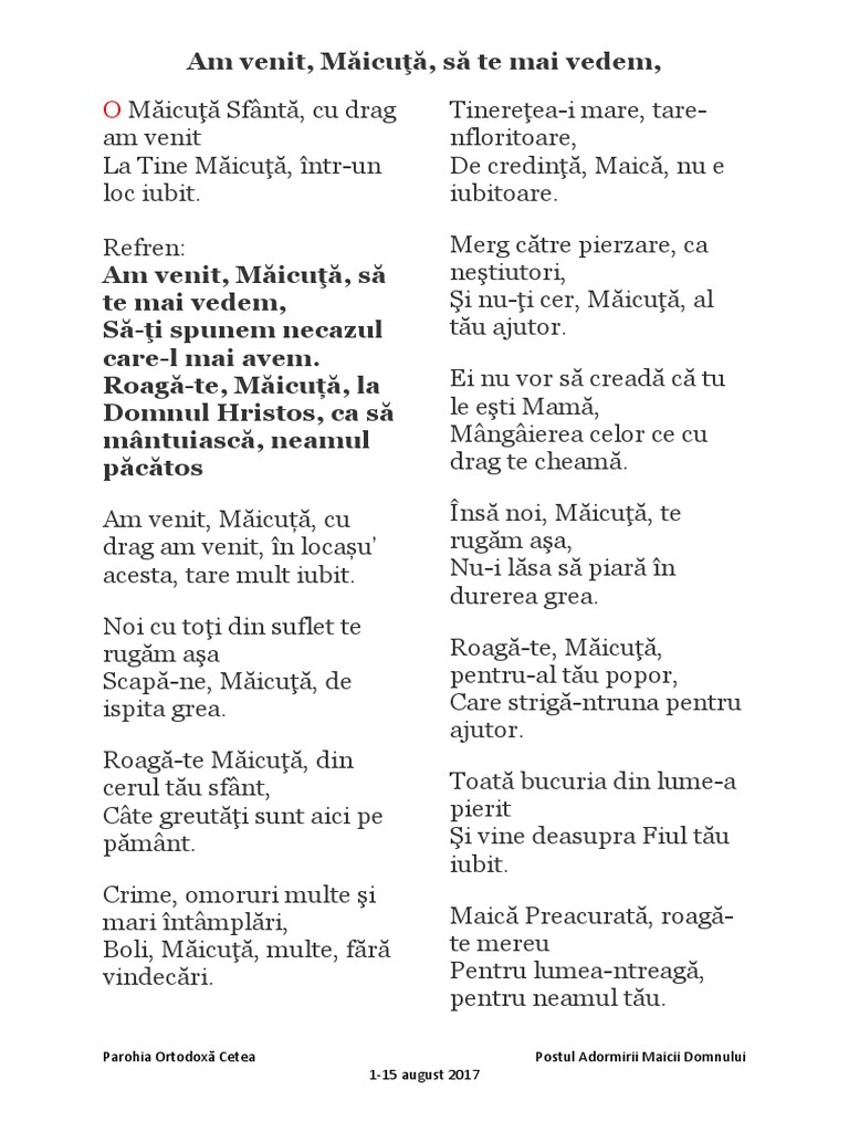 O Maicuta Sfanta Versuri Ortodox