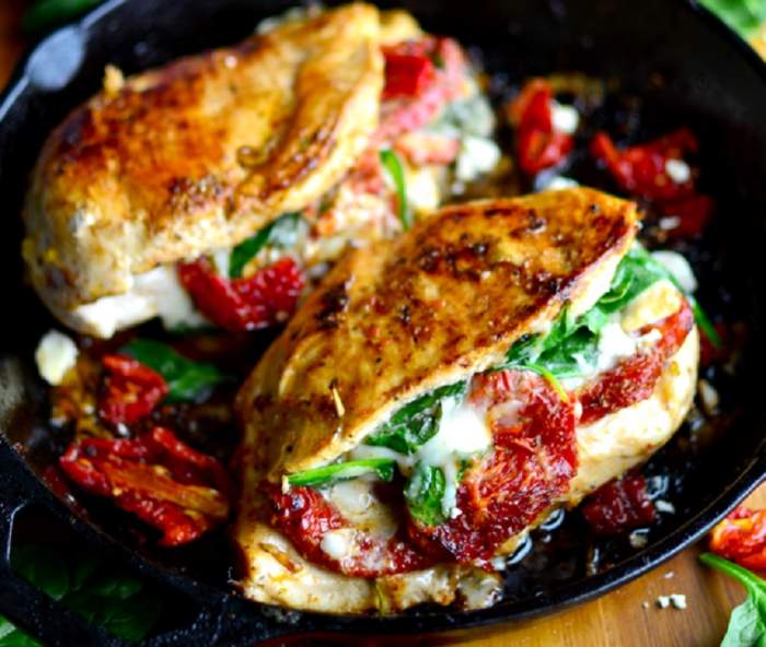 Rețete Pentru Pranz Pui Umplut Cu Spanac Mozzarella și Roșii Uscate