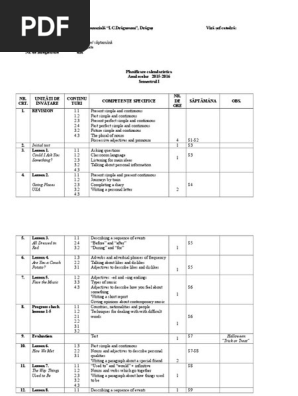 1 2 Planificare Calendaristica 8th Grade Reward 2015 2016 Adjective Verb