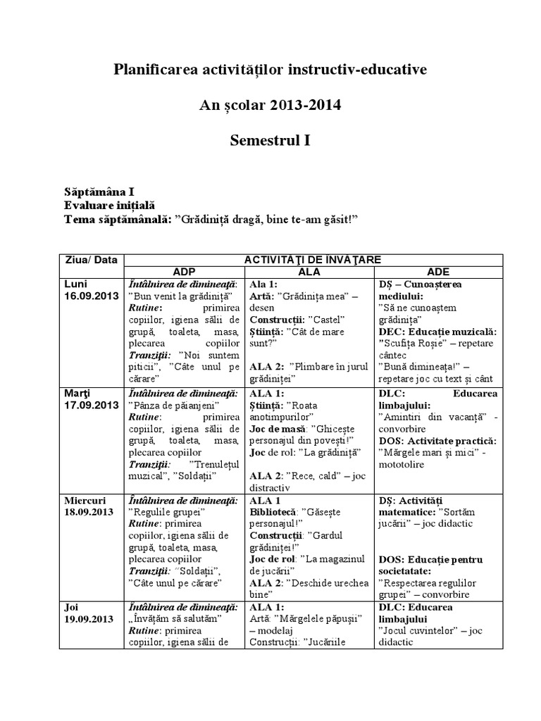 Pdf Planificarea Activităților Instructiv Educative An școlar 2013 2014 Semestrul I Mironescu Mihaela Academia Edu