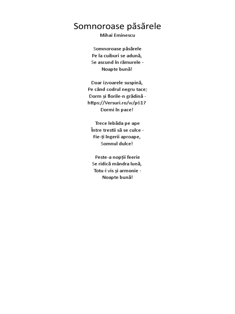 Somnoroase Păsărele De Mihai Eminescu Kidibot Bătăliile Cunoașterii