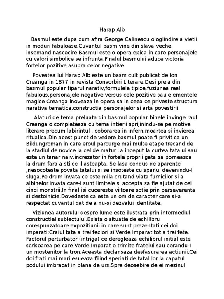 Referat Povestea Lui Harap Alb Tema Si Viziunea Despre Lume 480759 Graduo