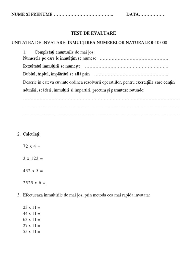 Fisa De Lucru Clasa A Iiia Inmultirea Si Impartirea Qvnd6jyg5r4x