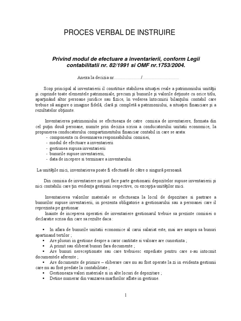 Proces Verbal De Inventariere Model Completat